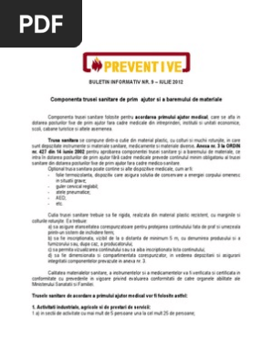 3 fiole furosemid 3 fiole glucoza 33. 1 1 trusa sanitara se compune dintr o cutie din material plastic cu colturi si muchii rotunjite in care sunt depozitate instrumente si materiale sanitare medicamente si materiale diverse. Barem medicamente aparat de urgenţă pentru cabinete individuale a solutii adrenalina. Ordinul nr 427 din 14 iunie 2002 al ministrului sănătăţii şi familiei pentru aprobarea componenţei trusei sanitare şi a baremului de materiale ce intră în dotarea posturilor de prim ajutor fără cadre medicale.