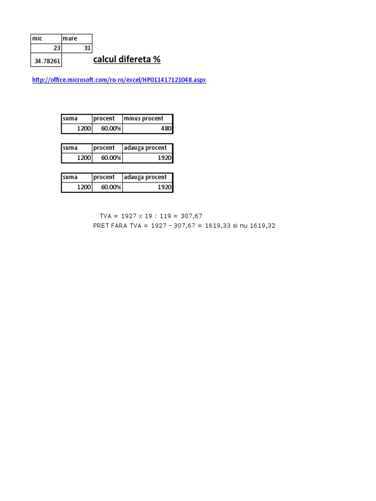 Calcul Pret Fara Tva