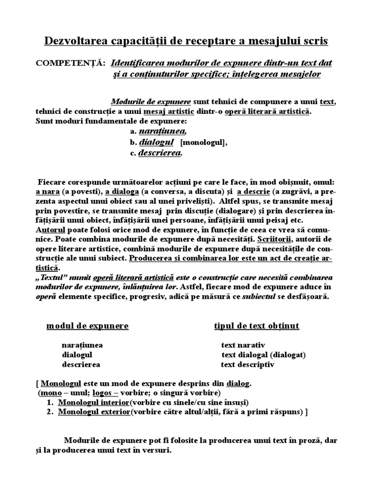 Moduri de expunere în textul literar şi nonliterar modurile de expunere sunt modalităţile în care noi sau scriitorul vrem să prezentăm acţiunea evenimentele locul şi timpul acţiunii personajele ele sunt.