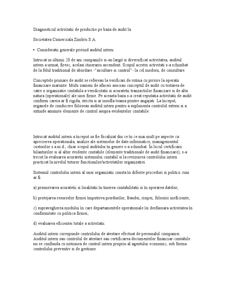 Vă informăm că în monitorul oficial nr. 162 din 6 iulie 2017 privind auditul statutar al situațiilor financiare anuale și al situațiilor financiare anuale consolidate denumită în cele ce urmează legea. Auditul intern are ca obiectiv o evaluare ce sa conduca la cresterea performantei deja existente intr o organizatie si nu sa judece performanta existenta. Conform prevederilor de la art.