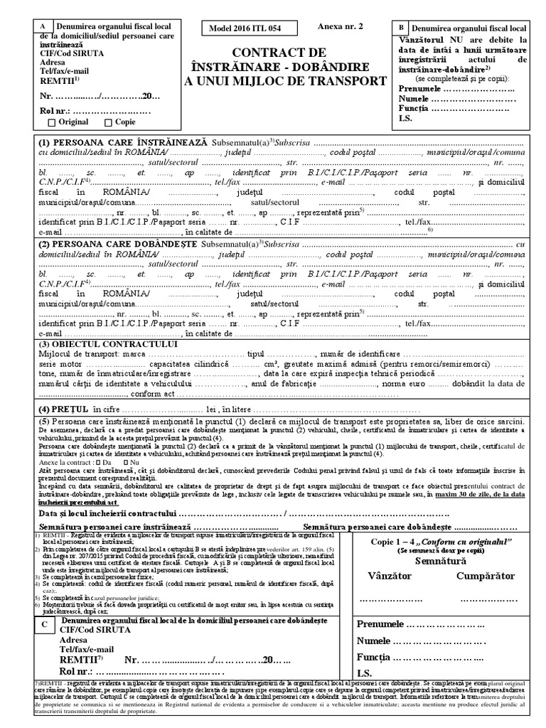 Contract de înstrăinare dobândire a unui mijloc de transport denumirea organului fiscal local denumirea organului fiscal local de la domiciliul sediul persoanei care vânzătorul nu are debite la data de înstrăinează întâi a lunii următoare înregistrării c i f cod siruta adresa tel fax e mail remtii1 prenumele. Formular contract instrainare dobandire a unui mijloc de transport pagina web oficială a municipiului baia mare conţine informaţii utile despre administraţia publică locală despre viaţa şi evenimentele din comunitatea băimăreană. A unui mijloc de transport 1 persoana care înstrăinează. A unui mijloc de transport 1.