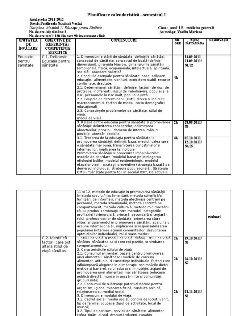 Analiza importantei sanatatii din prisma componentelor stilului de viata. Comentarii 25 1 2. Prima pagină învăţământ gimnazial discipline opţionale planificări planificare educație pentru sănătate v planificare educație pentru sănătate v 21 iulie 2017 13 03. Abonati va la alerta de pret.