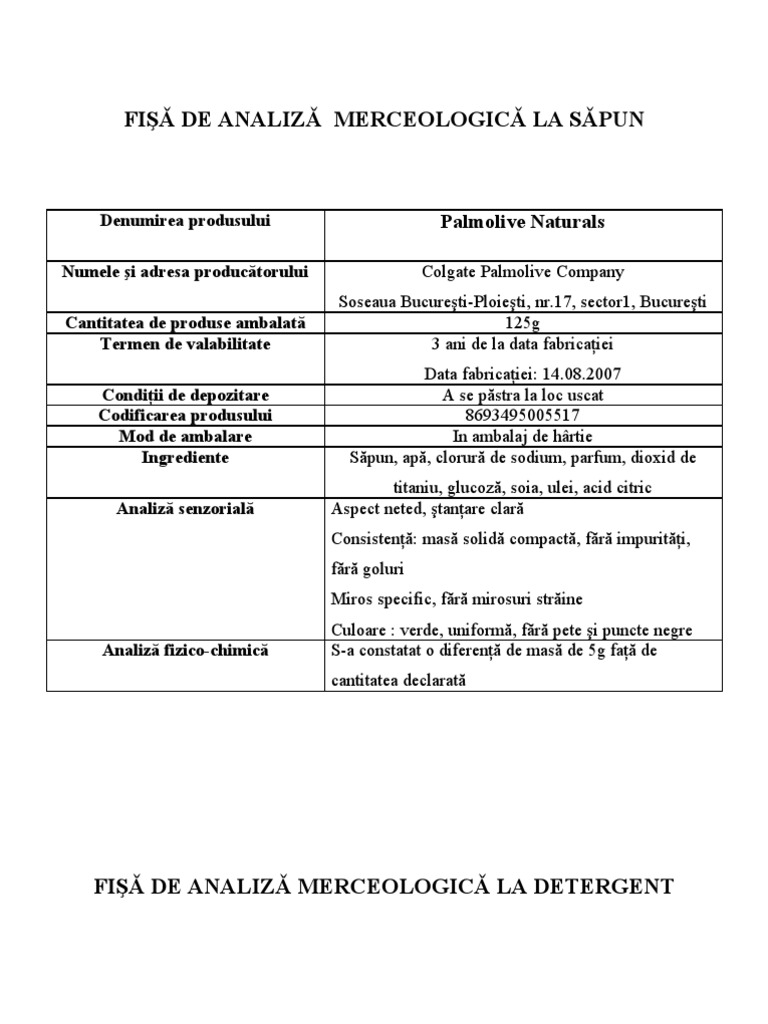 Fisa De Analiza A Unui Produs