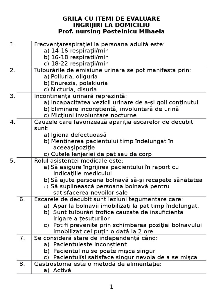 Este o prezentare a problemei de sanatate a unui pacient potenţial sau real care rezultă din analiza. Nursing comunitar și îngrijiri la domiciliu. Persoanele cu dizabilități 3. Se realizeaza prin programe concepute individualizat pentru fiecare tip de pacient si de afectiune monitorizate permanent si beneficiind de personal competent si echipamente medical specifice.