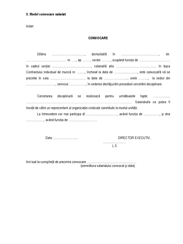 Va rog mult astept un model de avertisment scris. Noului cod al muncii. 27303 rating utilizatori. Vom incepe prin a va reaminti ca abaterea disciplinara este o fapta in legatura cu munca si care consta intr o actiune sau inactiune savarsita cu vinovatie de catre salariat.