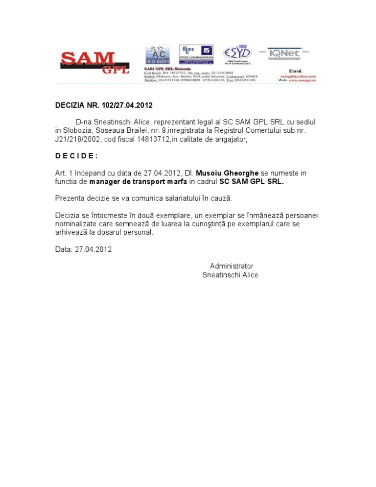 Model decizie încetare cim necorespundere profesională în perioada de probă art. Acte documente sabloane mostre imagini si formulare completate sau necompletate necesare tuturor cv scrisori contracte cereri tip adeverinte proces verbal declaratii etc. Decizie imputernicire ridicare documente decizie alocare spatii proiect. 4 prezenta decizie se comunica salariatului si va fi dusa la indeplinire prin intermediul departamentului personal.