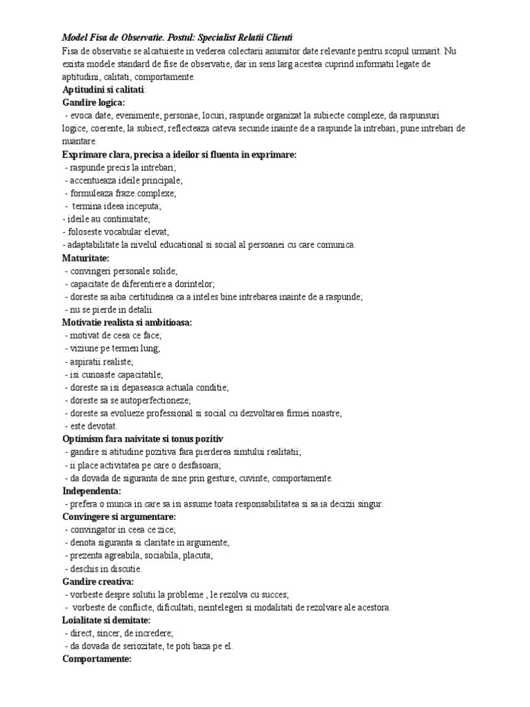 Model fisa de observatie. Fisa de observatie si grila de observatie. Model fisa de observatie free download as word doc doc docx pdf file pdf text file txt or read online for free. Fisa de observatie resurse umane candidati comportament aptitudini fisa de observatie se realizeaza in vederea colectarii anumitor informatii relevante pentru scopul urmarit. Foaie fisa de observatie clinica generala model de fisa atestat privind totalizarea perioadelor de asigurare de munca sau resedinta model de atestat cerere ingrijire la domiciliu model de cerere.