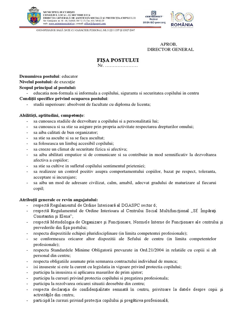Model fisa post completata cu gdpr. 57 de modele de fise de post editabile actualizate conform gdpr pret cu tva. Echipa editoriala a rentrop straton va pune la dispozitie 57 de modele de fise de post editabile actualizate conform gdpr. Modele fise de post fise de post gratuite vreau sa primesc ultimele noutati prin e mail. Rentrop straton va ofera acum cea mai bogata culegere de fise de post actualizate conform noului cor in vigoare 202 modele de fise de post editabile toate continand criterii de evaluare a performantelor click aici pentru detalii despre lucrare.