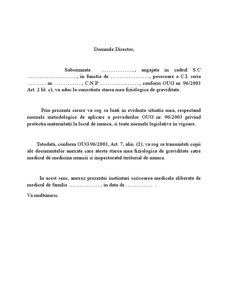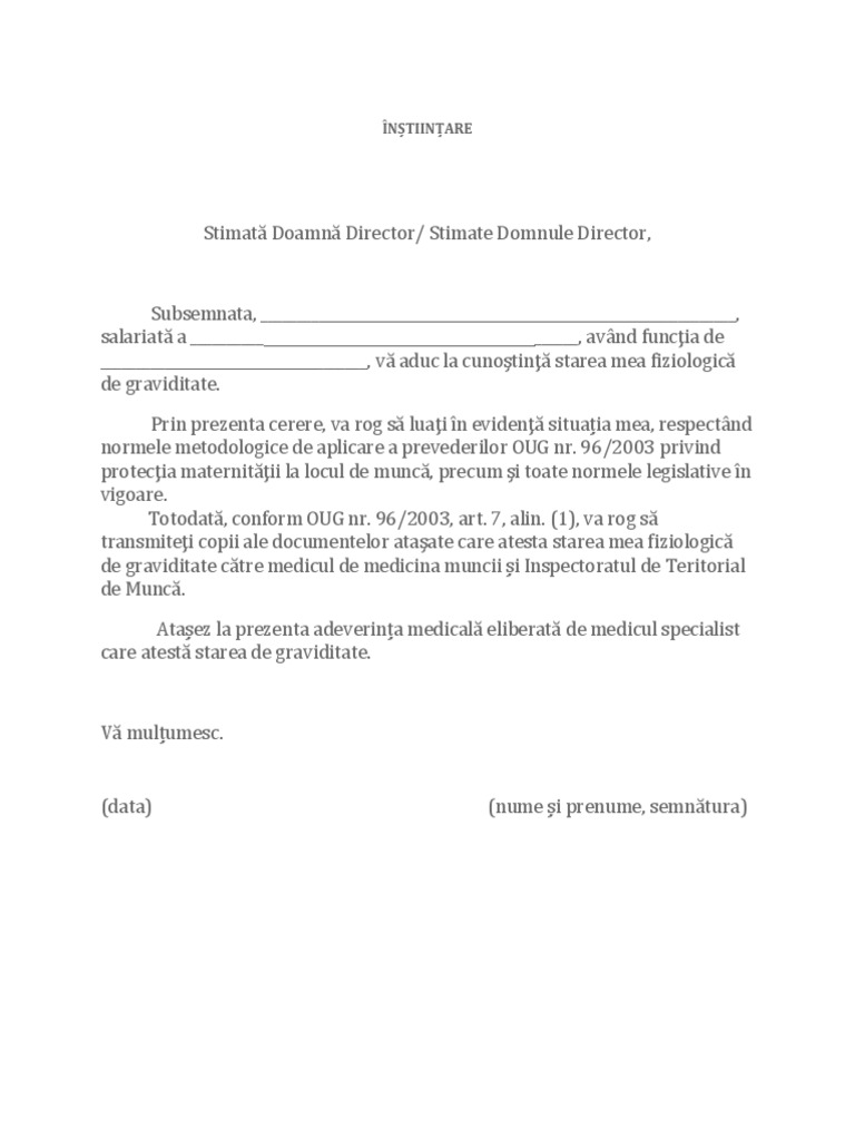 Octa last modified by. Instiintarea angajatorului despre sarcina cerere de reducere a timpului de lucru pentru gravide. Acest lucru aduce mai multe avantaje viitoarelor mămici. Model de instiintare oficiala a angajatorului asupra starii fiziologice de graviditate.