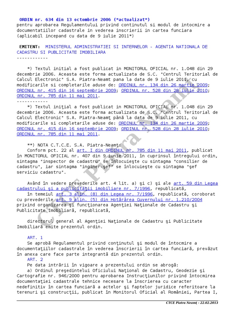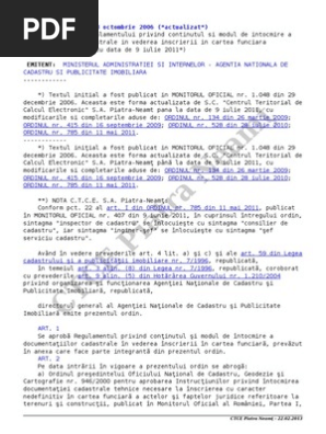 Ordinul 107 din 2010 actualizat. 107 din 29 martie 2010 actualizat pentru aprobarea regulamentului privind autorizarea sau recunoaşterea autorizării persoanelor fizice şi juridice române ale unui alt stat membru al uniunii europene sau ale unui stat care aparţine spaţiului economic european în vederea realizării şi verificării lucrărilor de specialitate în domeniul cadastrului al geodeziei şi al cartografiei pe teritoriul româniei actualizat până la data de 26 ianuarie 2017. Ordin 107 29 03 2010 c t c e. 107 din 29 martie 2010 pentru aprobarea regulamentului privind autorizarea sau recunoasterea autorizarii persoanelor fizice si juridice romane ale unui alt stat membru al uniunii europene sau ale unui stat care apartine spatiului economic european în vederea realizarii si verificarii lucrarilor de specialitate în domeniul cadastrului al geodeziei si al cartografiei pe teritoriul romaniei. Neamt legis c list ă a lucr ărilor de specialitate realizate şi a celor la care a participat specificând.