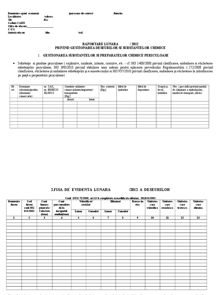Mai departe platforma informatica aplica automat toti algoritmii de calcul si sintetizare a datelor pentru a ti furniza rapoartele si evidentele necesare. 31 martie 2019 este termenul de raportare către autoritatea teritorială pentru protecţia mediului a evidenței gestiunii deșeurilor. Acesta este un fragment din metodologia de culegere a datelor pentru baza națională de date privind deșeurile rezultate din activități medicale din 03 12 2012 cumpărați documentul în formă actualizată sau alegeți un abonament lege5 care permite accesul la orice formă actualizată. Intocmeasca evidenta lunara a deseurilor medicale generate si sa o raporteze lunar catre dsp.