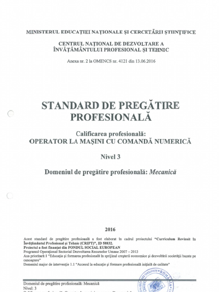 2 din ordonanța de urgență a guvernului nr. Raport de activitate semestrul i 2019. 3023 2018 privind controlul standardelor de pregătire profesională și înregistrarea acestora în registrul național al calificărilor profesionale din educație rncpe modificări text publicat în monitorul oficial partea i nr. Standardele de pregătire profesională pentru calificări profesionale de nivel 3 și 4 al cadrului național al calificărilor pentru care se asigură pregătirea prin învățământul profesional și tehnic aprobate prin omencs nr.