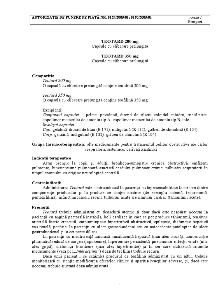 O capsula cu eliberare prelungita contine teofilina 200 mg. Home prospect teotard 200 350 mg do not follow this link or you will be banned from the site. Prospect teotard 200mg 350 mg capsule. Polividona dioxid de siliciu coloidal ftalat de dibutil copolimer metacrilat de amoniu tip a copolimer metacrilat de amoniu tip b talc.